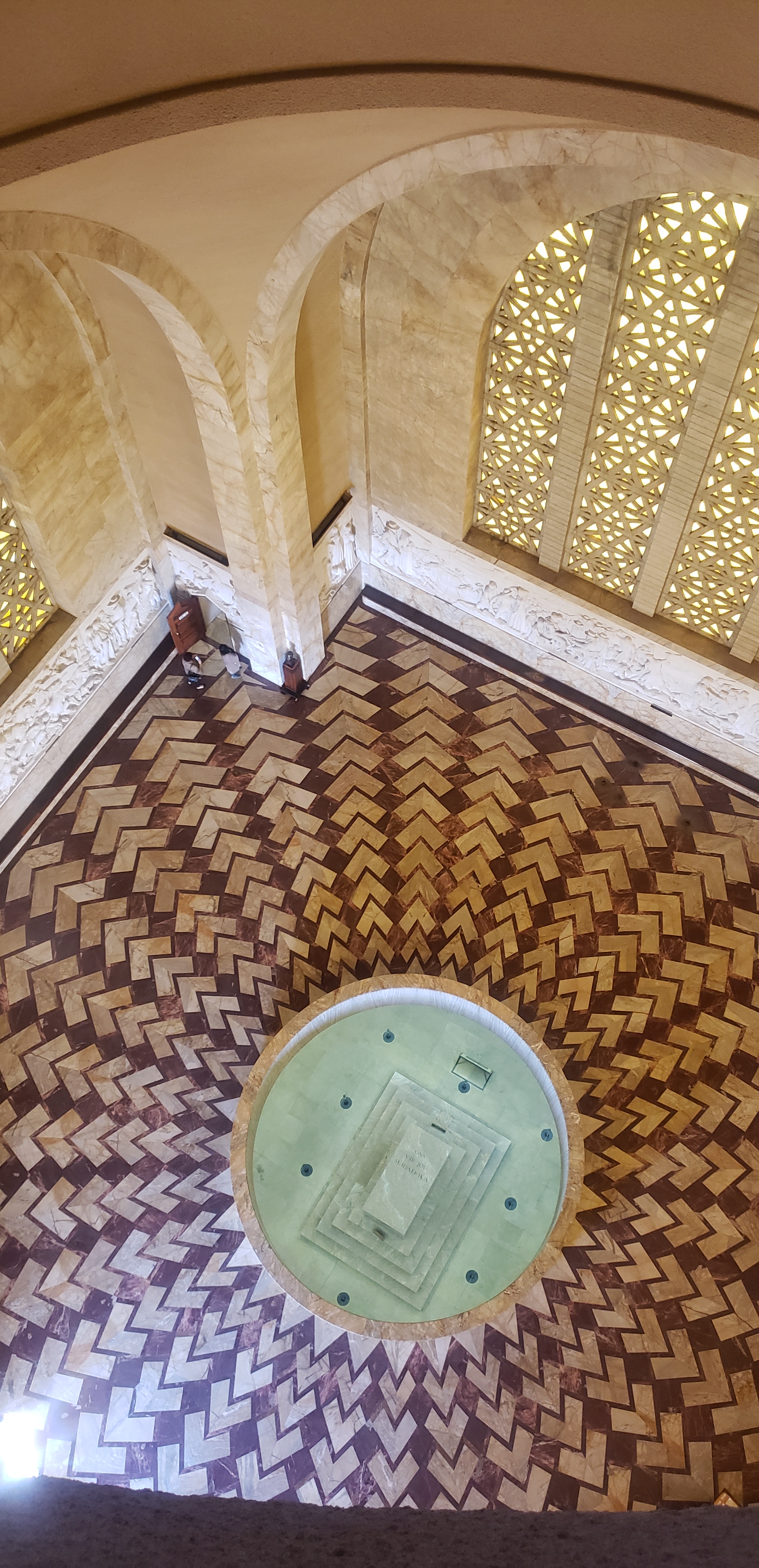 Designed by Gerard Moerdijk, attention to details such as the thirty two (32) sun rays that form the perimeter of the cenotaph when looking down from the sky dome, reveal the ways in which imperialism is celebrated and an alternative historical tale is narrated. Moerdijik’s design is also intended to permit a ray of sunlight to shine on the cenotaph at twelve o’clock on December 6th every year. The ray falls on the center and strikes the words ‘Ons vir Jou, Suid-Afrika’ which is Afrikaans for ‘We’re for you, South Africa.’ It marks the day the monument was open, the Vow of the Trekkers and symbolizes their connection to their God.